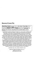 Banana Cream Pie starts with our white chocolate peanut butter layered on top of fluff and caramel sauce. We then top this off with banana infused cream, Nilla Wafers, and dried banana chips!