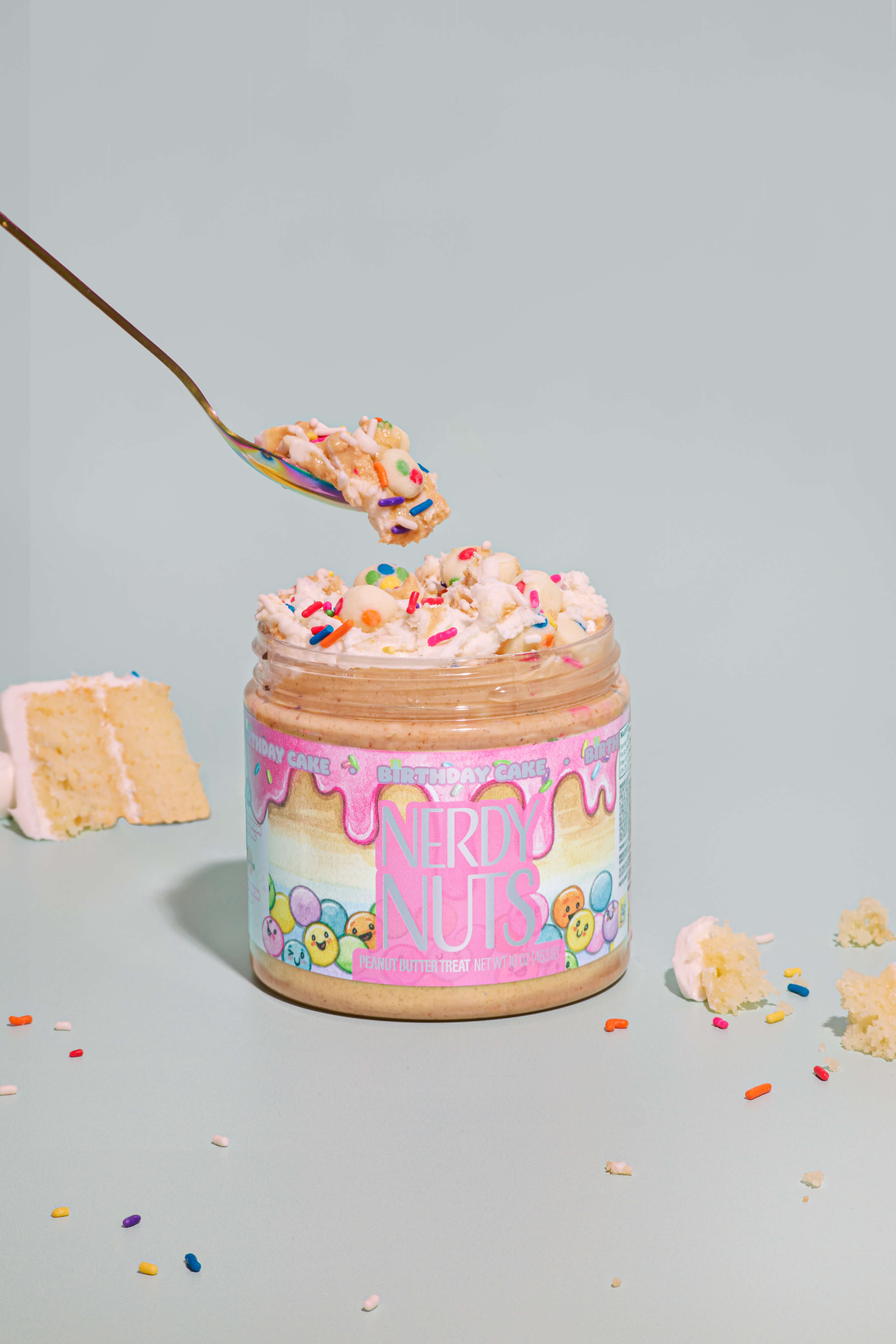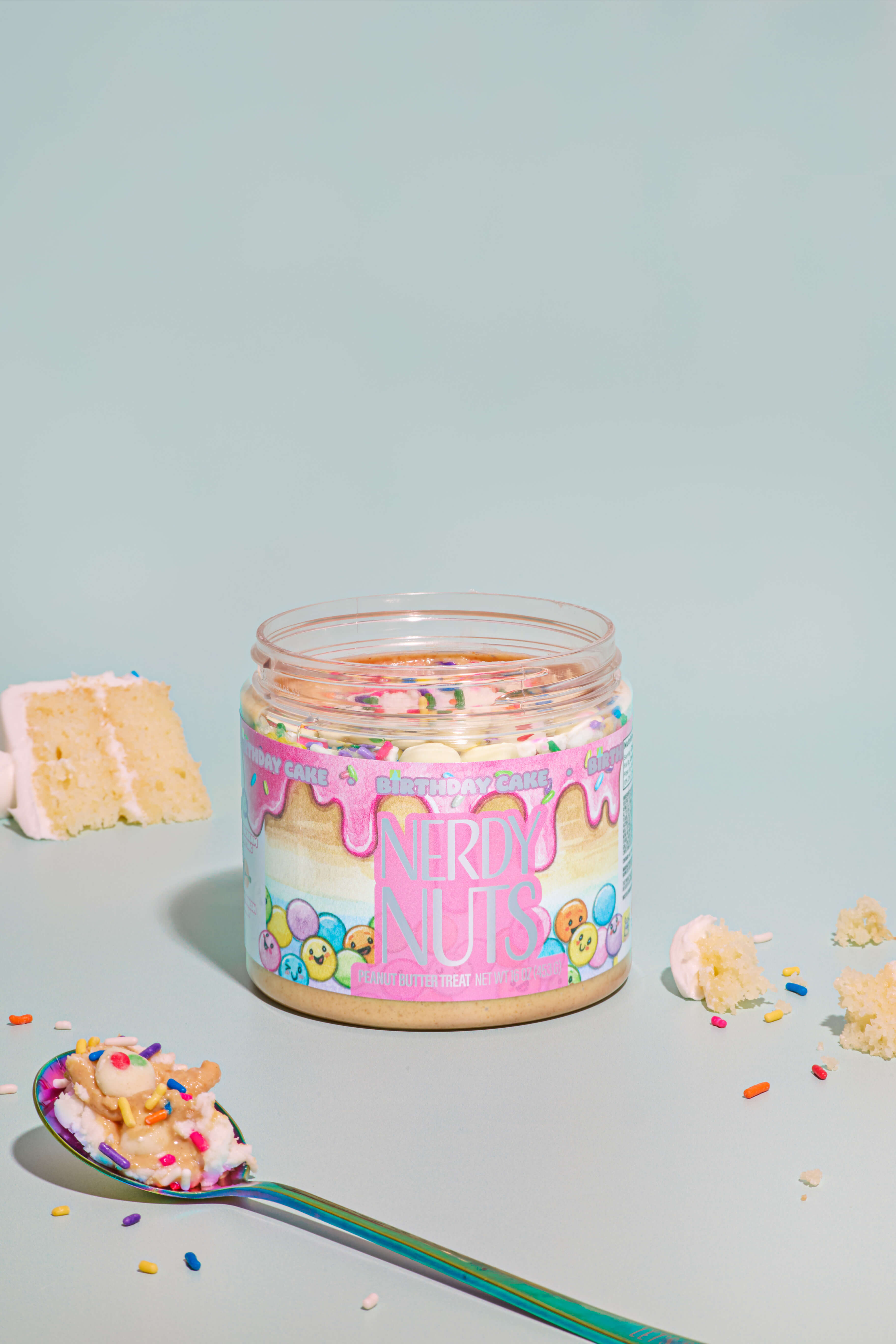 Celebrate another year with Nerdy Nuts with our Birthday Cake peanut butter!