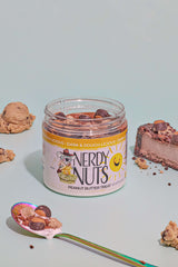 Sweet dark chocolate peanut butter is layered on cheesecake mallow creme, cookie dough bites, and dark chocolate mini buckeye candies! Now that's a tall jar of peanut butter we're reaching for!