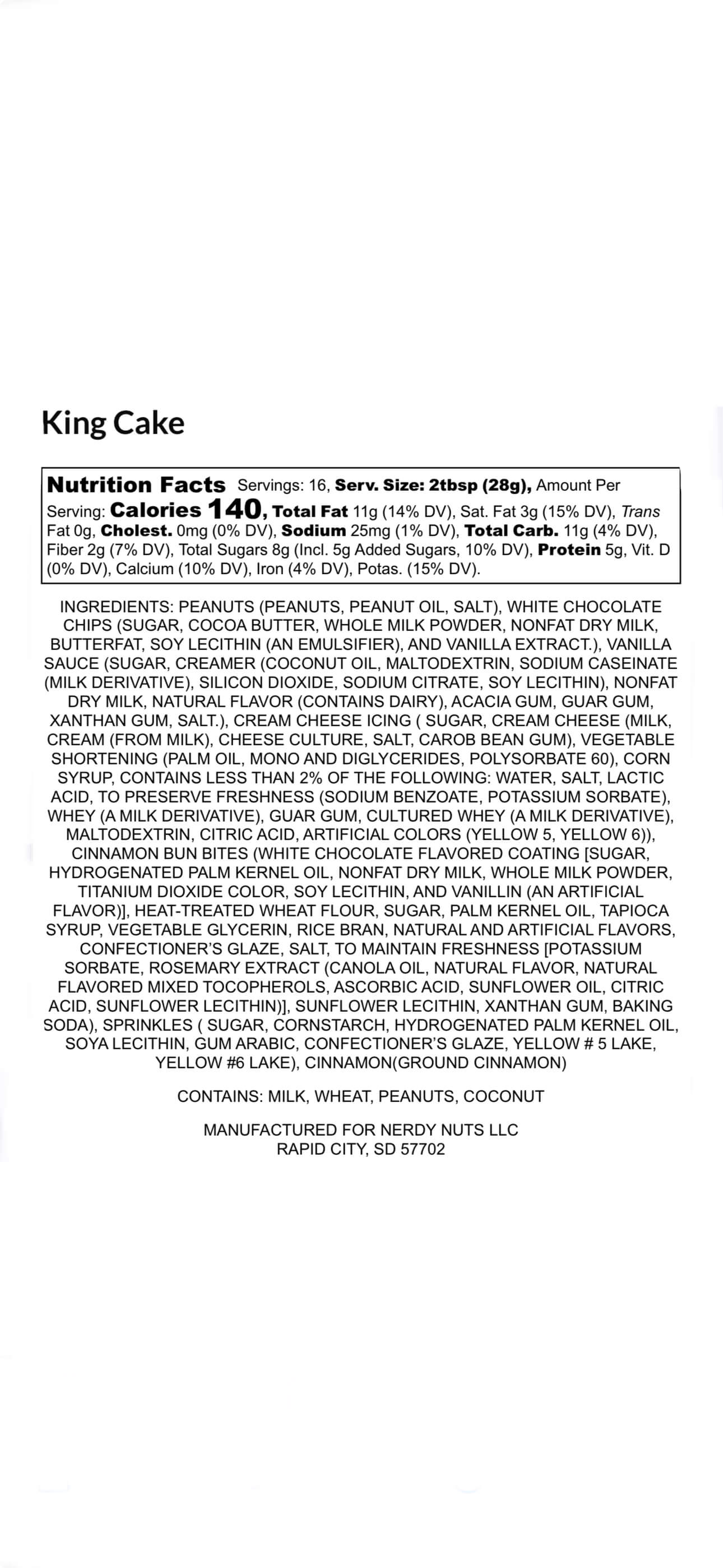 White chocolate peanut butter is layered on cinnamon vanilla sauce, topped with cream cheese frosting, cinnamon bun dough bites, and Mardi Gras sprinkles! (no plastic baby figurines were harmed or distributed into the peanut butter treats.)