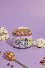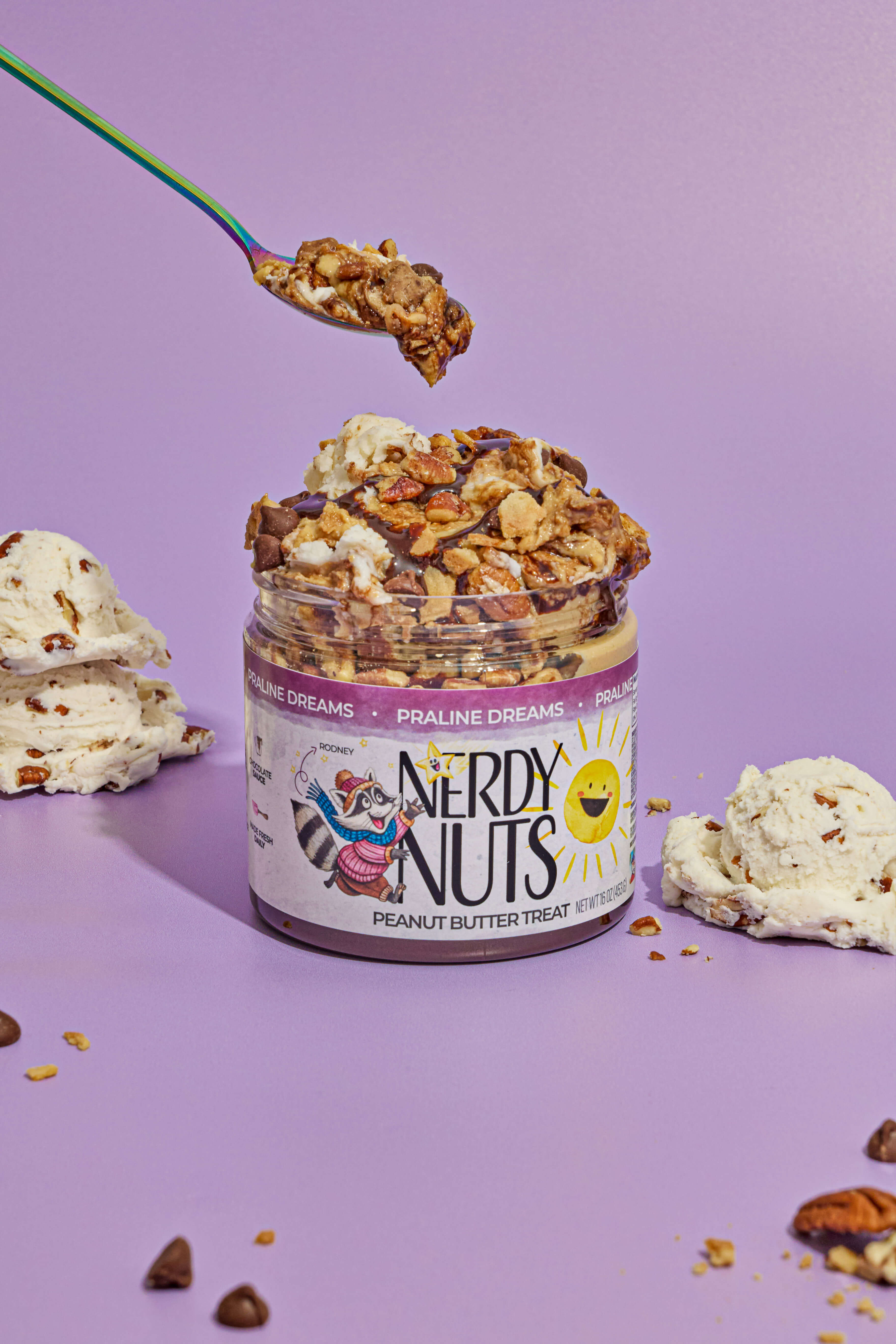 Butter pecan ice cream peanut butter is layered on chocolate sauce, topped with cookie dough, waffle cone bits, chocolate chips, buttered pecans, and whipped cream flavored frosting!