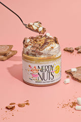 Sweet white chocolate peanut butter is layered on fluff and chocolate graham mallow creme, topped with fudge toaster pastry pieces, fluffy mini marshmallows, & chocolate frosting!