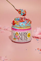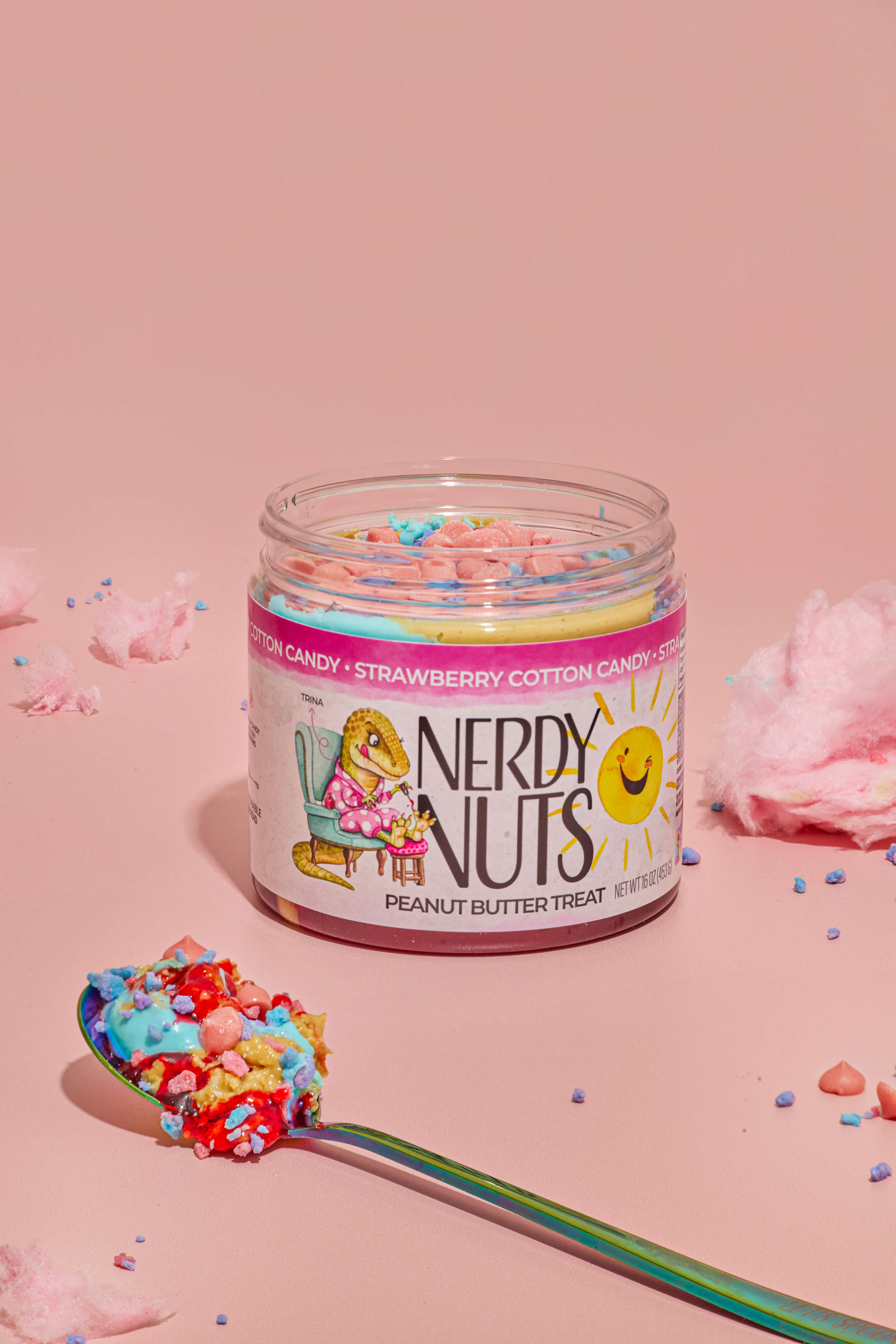 White chocolate peanut butter is layered on strawberry sauce, topped with cotton candy mallow creme, cotton candy crunchies, and strawberry creme chips!